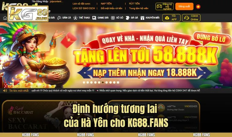 Định hướng của Hà Yên dành cho KG88.FANS là cam kết thúc đẩy các chương trình cộng đồng và khuyến khích cá cược có trách nhiệm. Với sự dẫn dắt của nữ CEO này, nền tảng hứa hẹn sẽ tiếp tục tỏa sáng mang lại giá trị vượt trội cho người chơi. Đặc biệt, thương hiệu nhà cái này góp phần khẳng định vị thế của Việt Nam trên bản đồ giải trí trực tuyến toàn cầu.